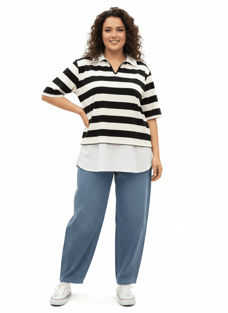 CAMISETA DE RAYAS CON EFECTO BLUSA DEBAJO.